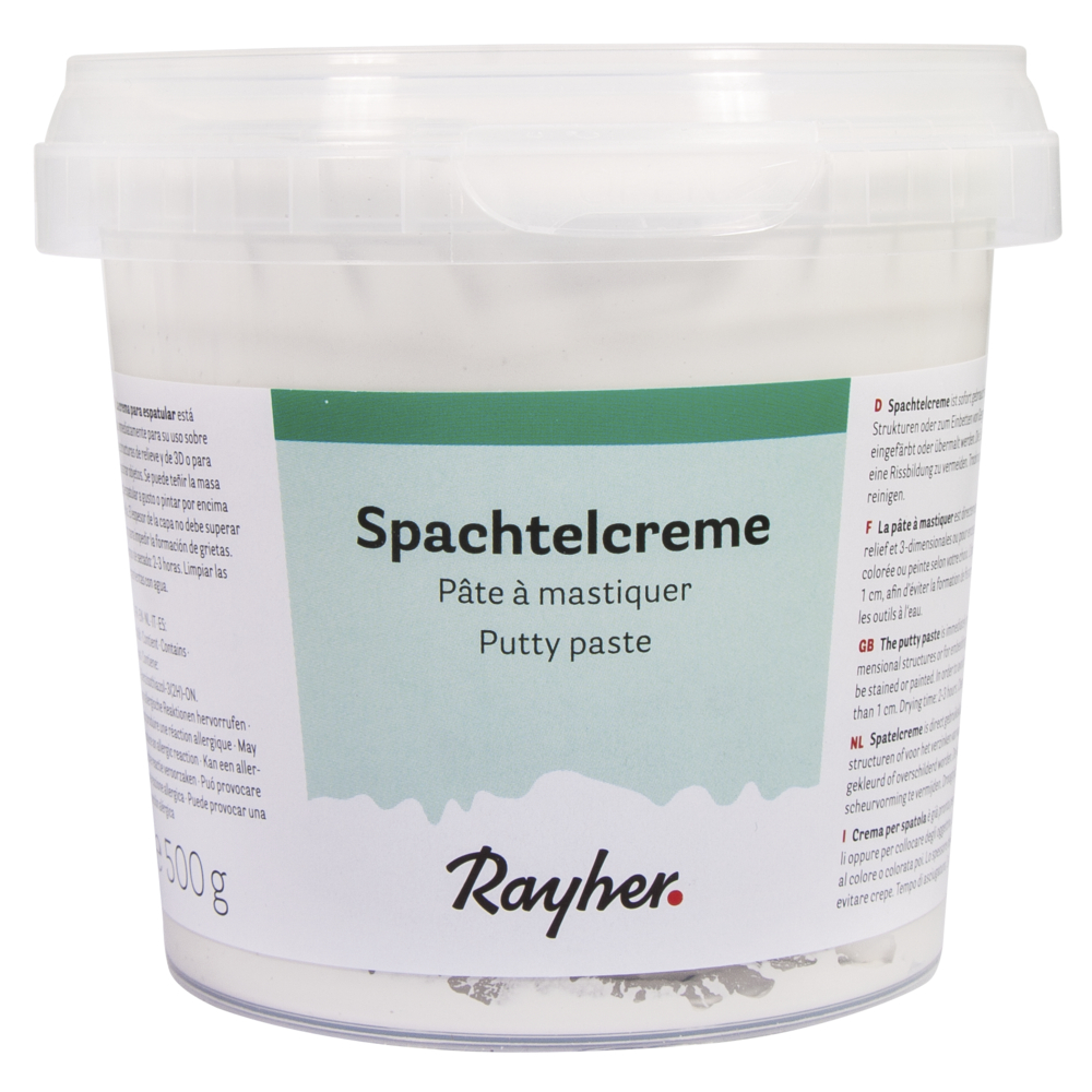 Unsere einzigartige Spachtelcreme ist sofort gebrauchsfertig und eignet sich für nahezu alle Arten der Malerei und Gestaltung - ganz egal, ob zur Erstellung besonderer Effekte und Oberflächen oder zur Acrylmalerei. Sie kann beliebig eingefärbt und mit allen Lasuren übermalt werden. Sie eignet sich optimal für die Erstellung von verschiedenen Tiefen, Strukturen, Reliefs und Oberflächen beim Gestalten von Dekorationen, Objekten und Figuren. Die Creme hat eine Trocknungszeit von 2-3 Stunden. Wir empfehlen, eine Schichtdicke über 1 cm zu vermeiden. Tipp: Mit einer Spachtel oder einer alten Telefon- oder Kreditkarte lässt sich die Creme prima auftragen und verteilen. Mit Werkzeugen wie Gabeln oder Schwämmen lassen sich gut besondere Strukturen erstellen. Die Werkzeuge können anschließen mit Wasser gereinigt werden.