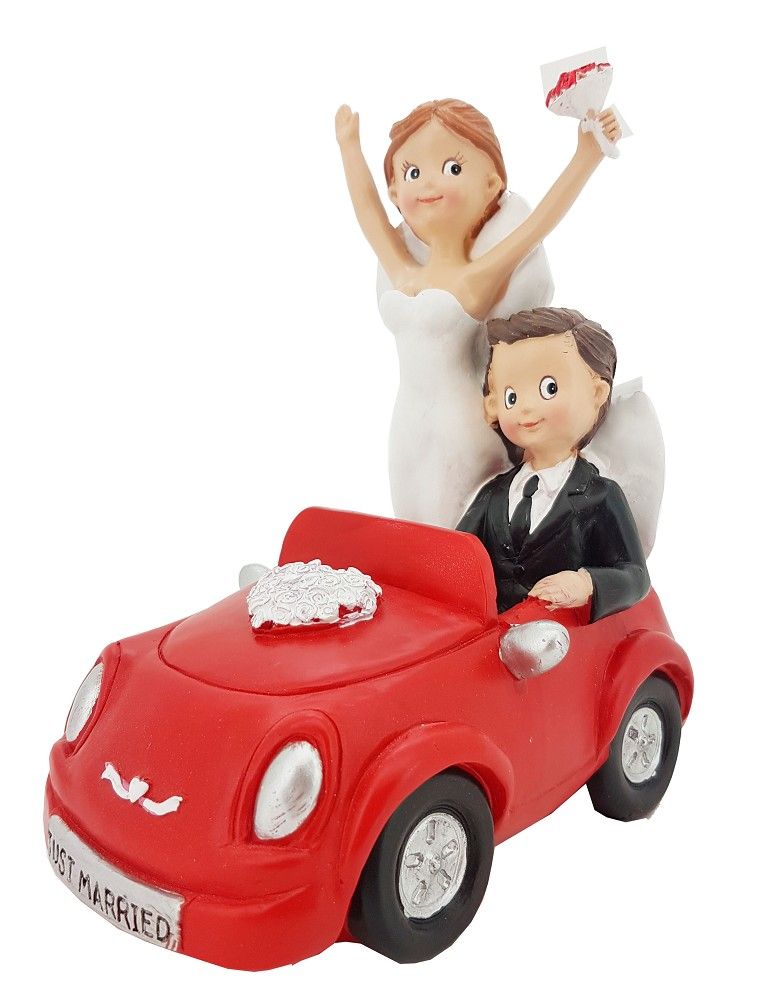Polyresinfigur jubelndes Hochzeitspaar im Auto, ca.16cm