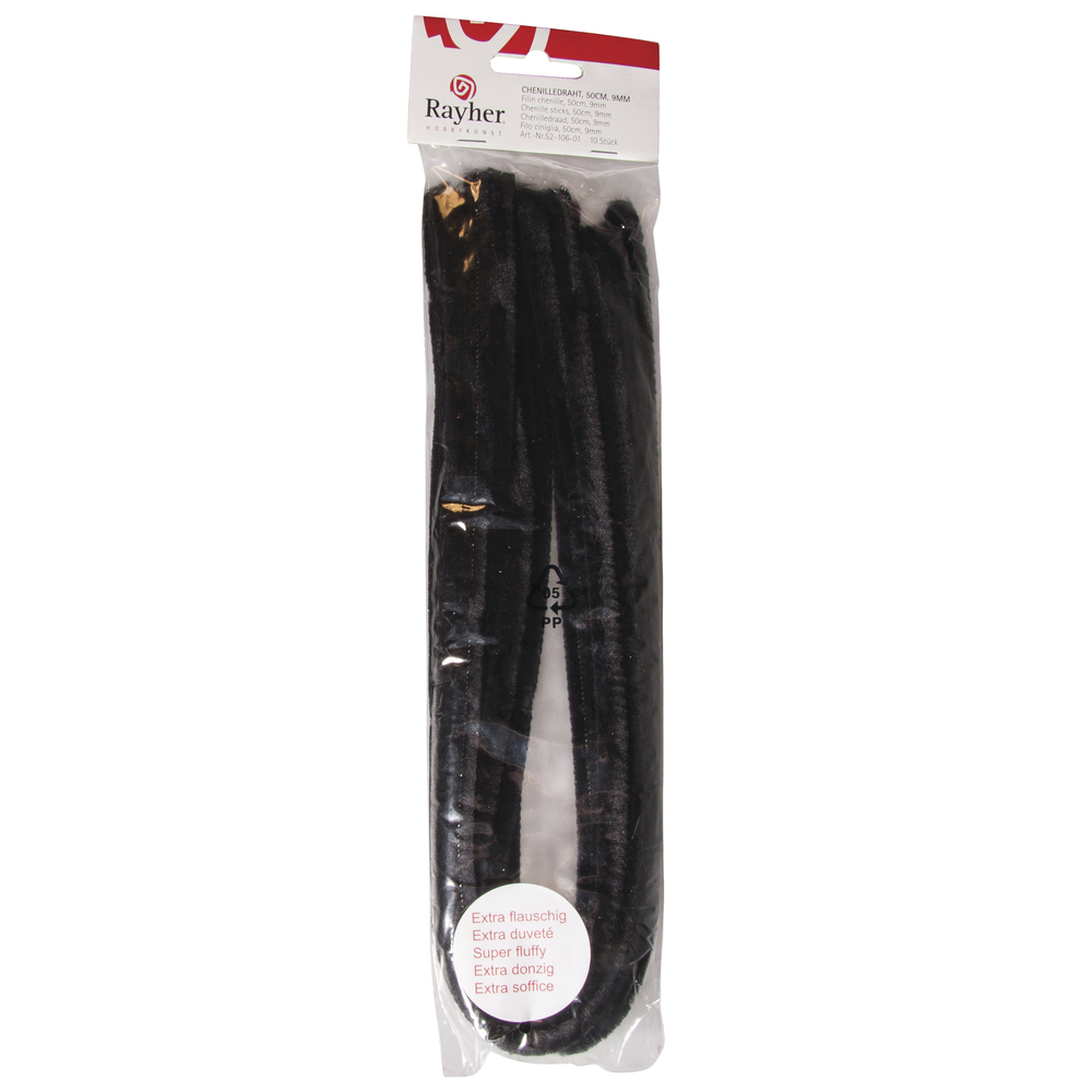 Chenilledraht Schwarz 50cm, Stärke 9 mm, SB-Btl 10Stück