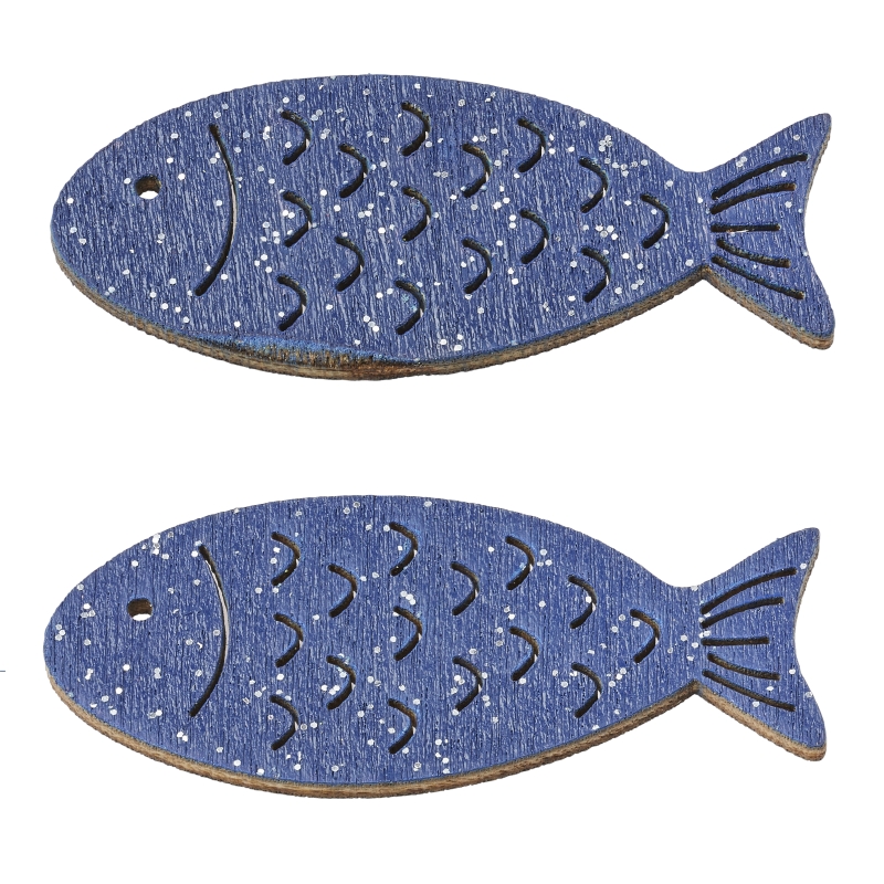 Fische mit Glimmer, 40 mm, Btl. à 6 St., dunkelblau