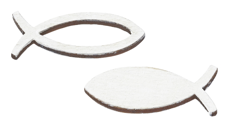 Holzstreuteil Fisch 3,5 cm, 2-fach sort., Box à 16 St., weiß