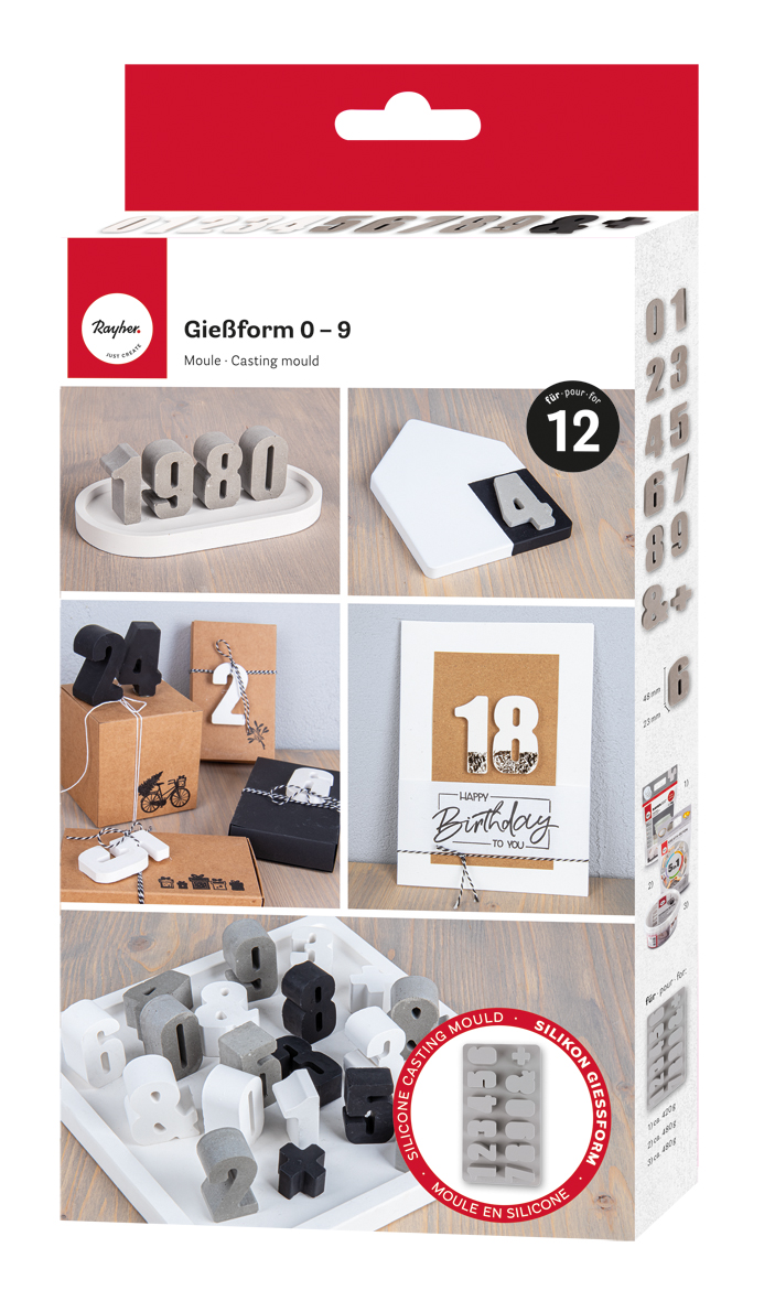 Silikon Gießform 0-9 14,5x26x2,5cm, 12 Formen