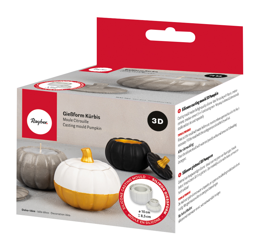 Silikon Gießform 3D Kürbis, 10cm mit Deckel, Höhe 8,5cm