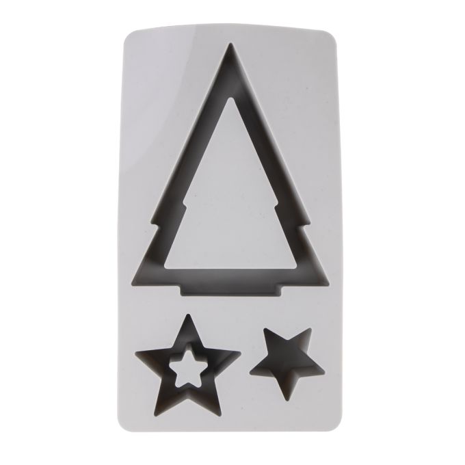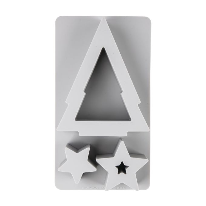 Silikon Gießform Teelichtbaum und Sterne 14,5x26x4cm, 3 Formen, Box 1Stück