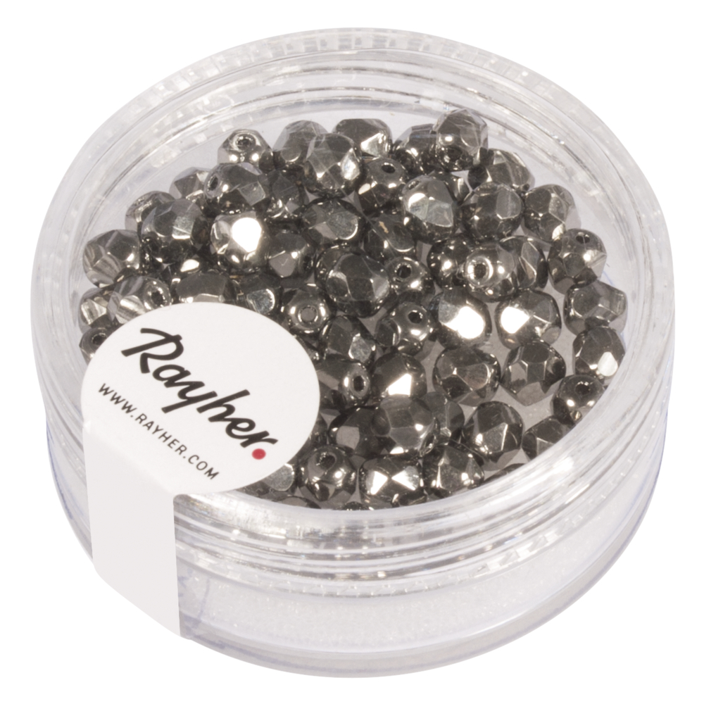 Glas Schliffperle, 4mm ø, 572-anthrazit