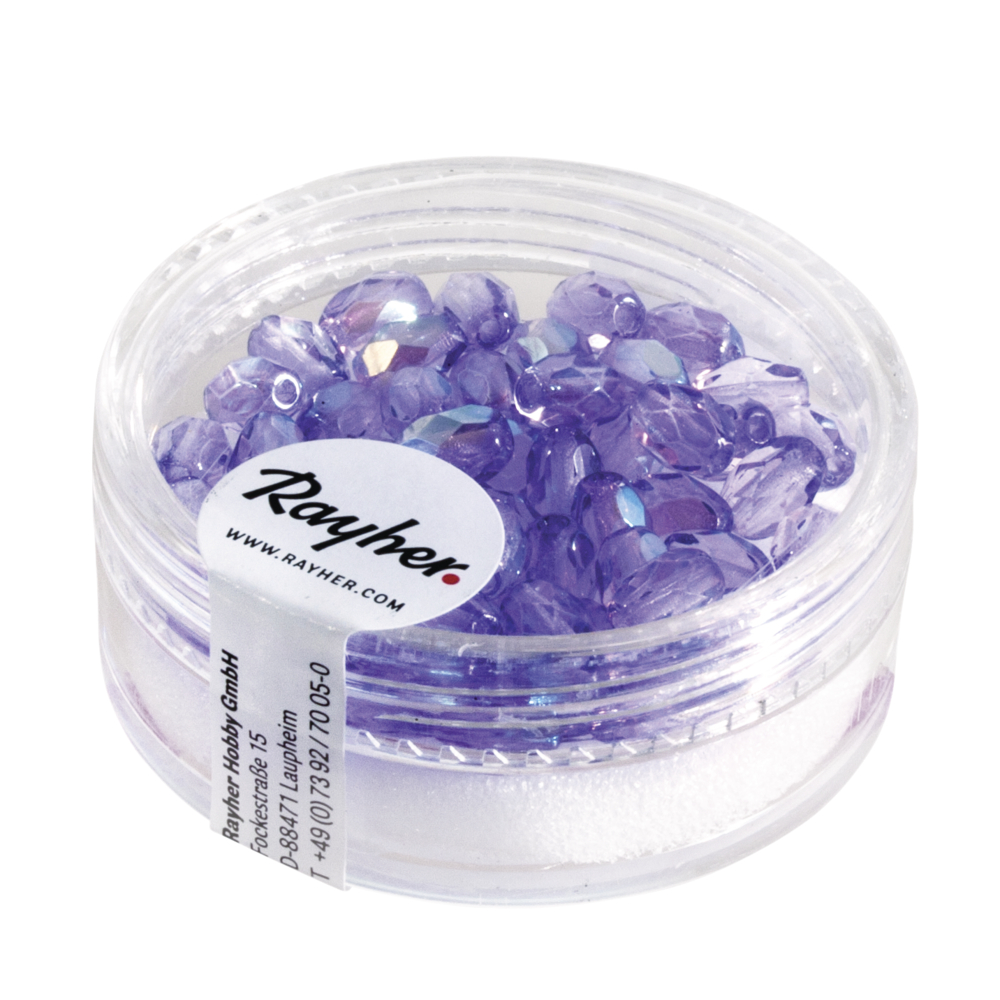 Glas Schliffperle Olive, 4mm ø 6mm, Dose 50Stück-flieder