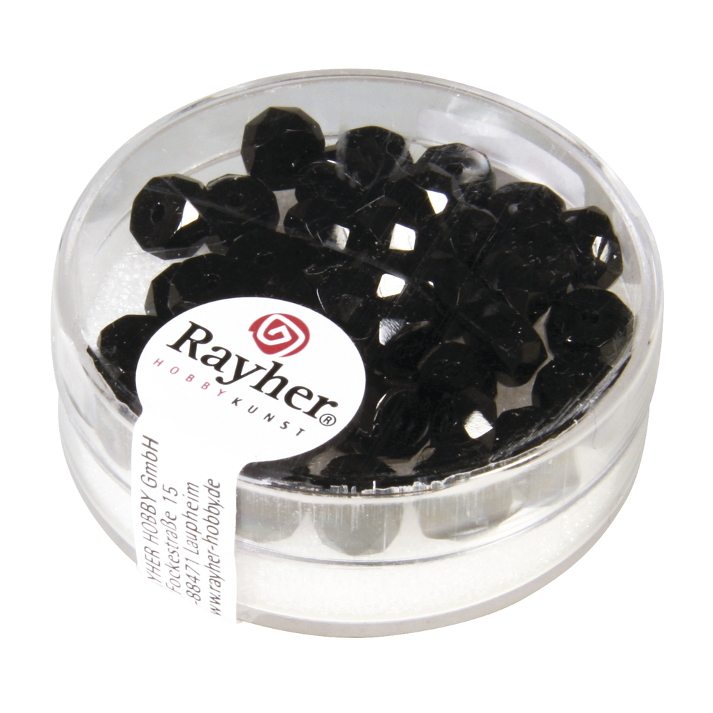 Glas Schliffperle Radl, schwarz 6x3mm, Dose 40Stück