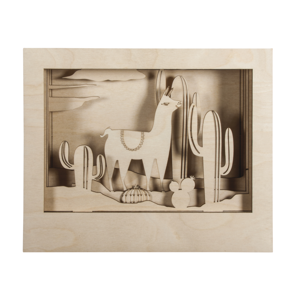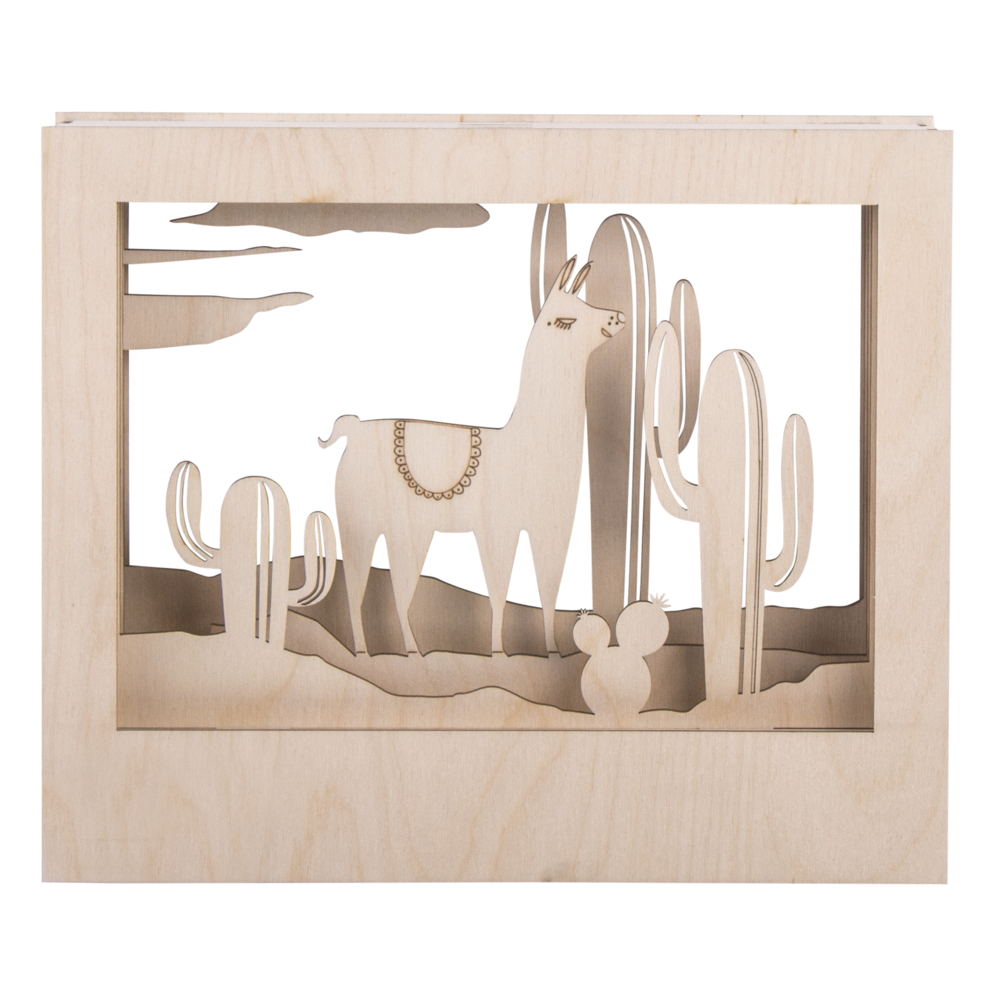Holzbaus. 3D-Motivrahmen Lama, FSC 100% 24x20x6,9cm, 10-tlg. , Box 1Set, natur