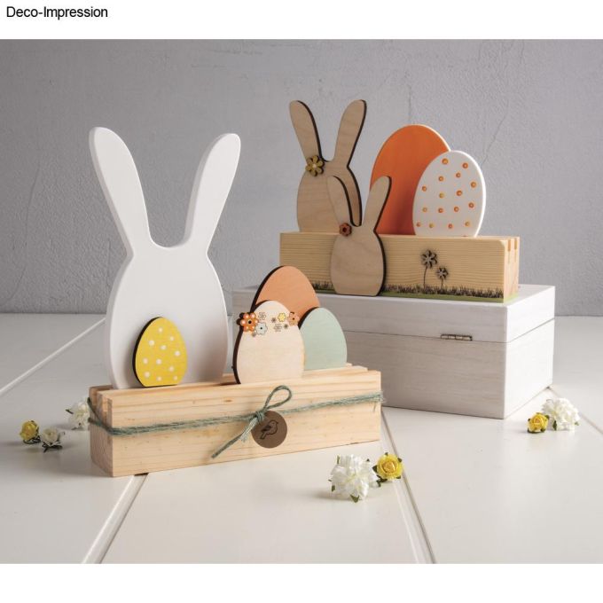 Eier dürfen an Ostern nicht fehlen. Die fünf Holzeier, eins davon mit Blumenmuster auf der Vorderseite, eignen sich für viele Bastelideen: mit Serviettentechnik oder DecoMaché-Papier beklebt, bemalt, mit dem Brandmal-Kolben verziert, beschrieben, bestempelt oder naturbelassen, die kreativen Möglichkeiten sind vielseitig.