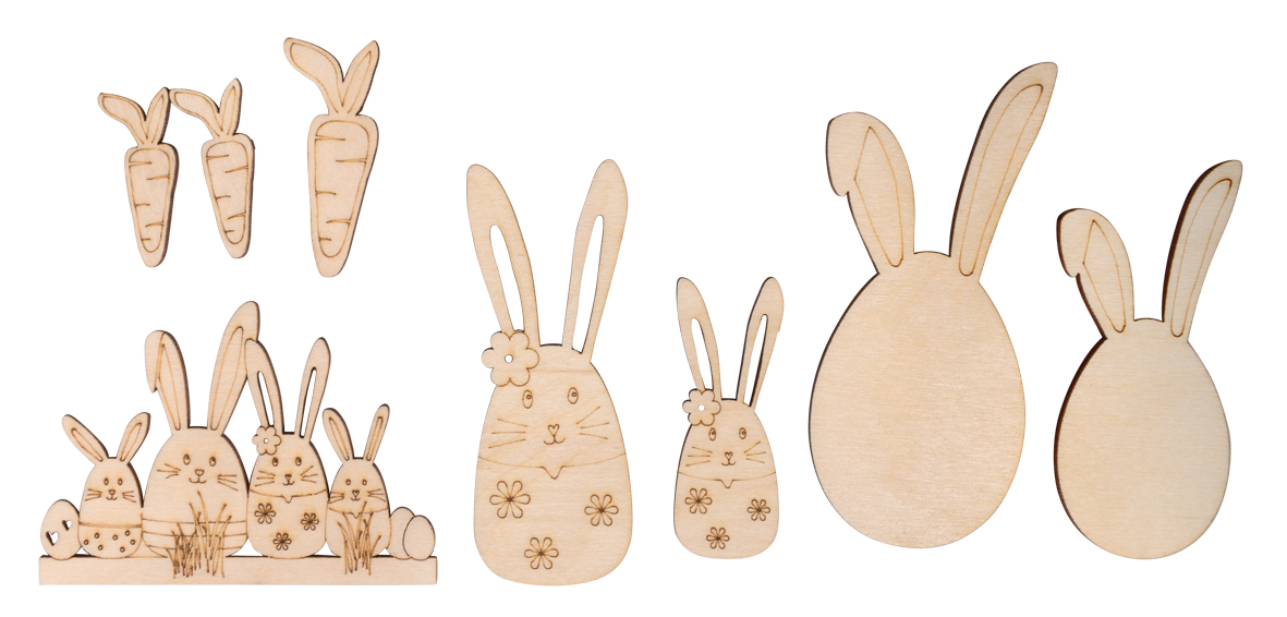 Holz Osterhasen&Freunde, FSC Mix Credit 4-8,8cm, SB-Btl. 8Stück, natur