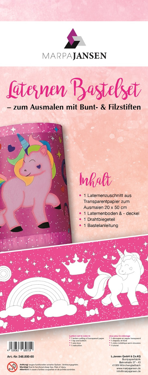 Laternen Set zum Ausmalen Einhorn