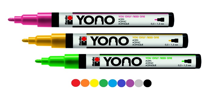 Acrylmarker für nahezu alle Untergründe z. B. Metall, Glas, Porzellan, Holz, Textilien, Stein, Kunststoff, Leinwand