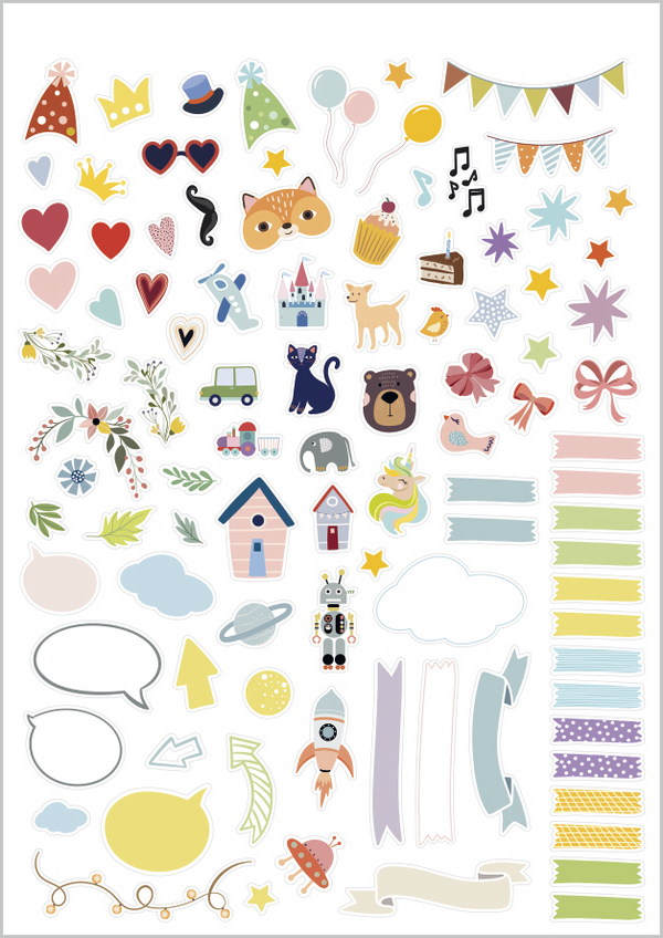 • Edler, extra starker Bastelkarton in weiß mit 2 Stickerbögen