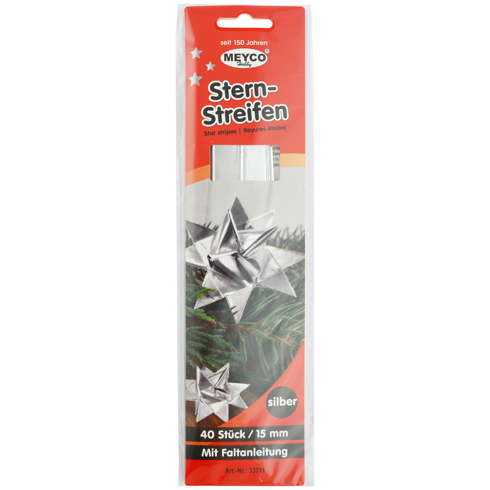 Stern-Streifen, silber, 40 Stück/15mm - 45 cm