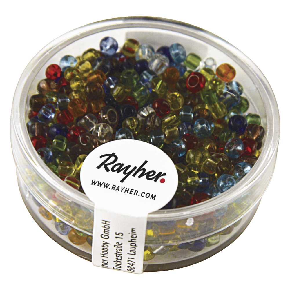Rocailles, 2,6mm, transparent Dose 17g-bunt
