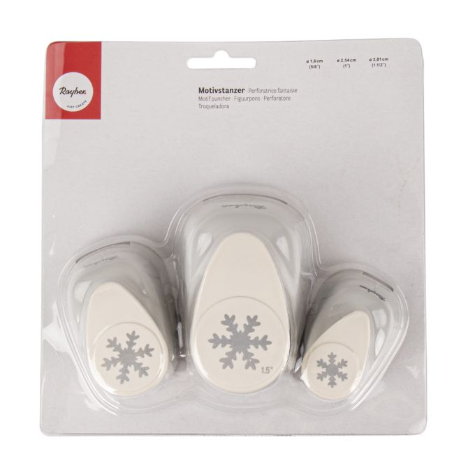 Motivstanzer Set: Schneeflocken 1,6cm+2,54cm+3,81cm, SB-Blister 3Stück